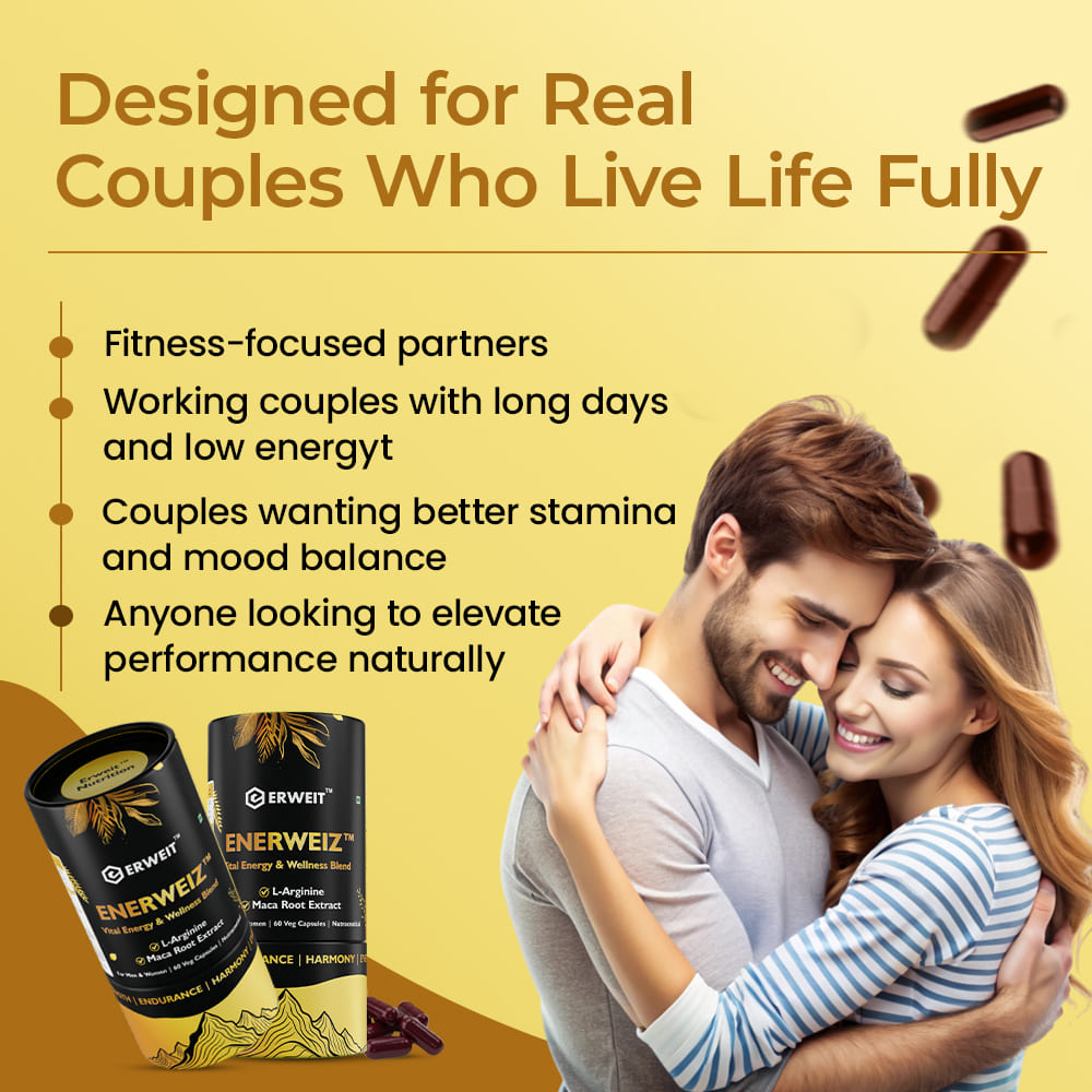 A premium, science-crafted blend of L-Arginine and Maca Root Extract that supports daily energy, stamina, circulation, and hormonal balance — for both men & women.