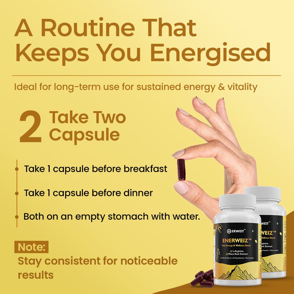 ENERWEIZ™ capsules are fortified with chosen herbs that are known to be natural stimulants and may help improve circulation to the organs, thereby helping you elevate your lifestyle.